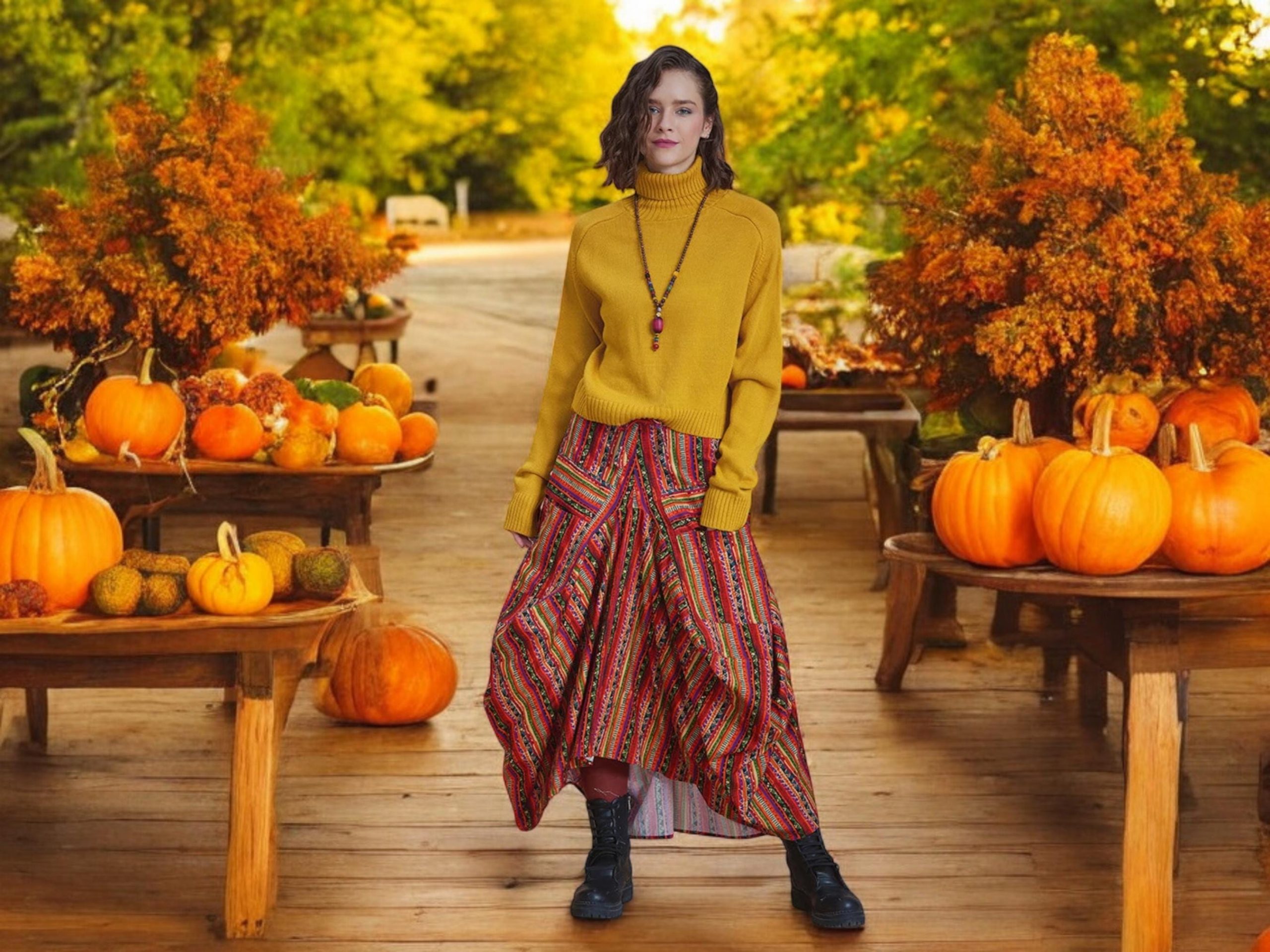 Thanks to its elastic waistband and adjustable ties, this skirt fits multiple body types comfortably while giving you freedom of movement. The asymmetrical cut adds a dynamic bohemian vibe, while the pockets bring practicality to your everyday style.