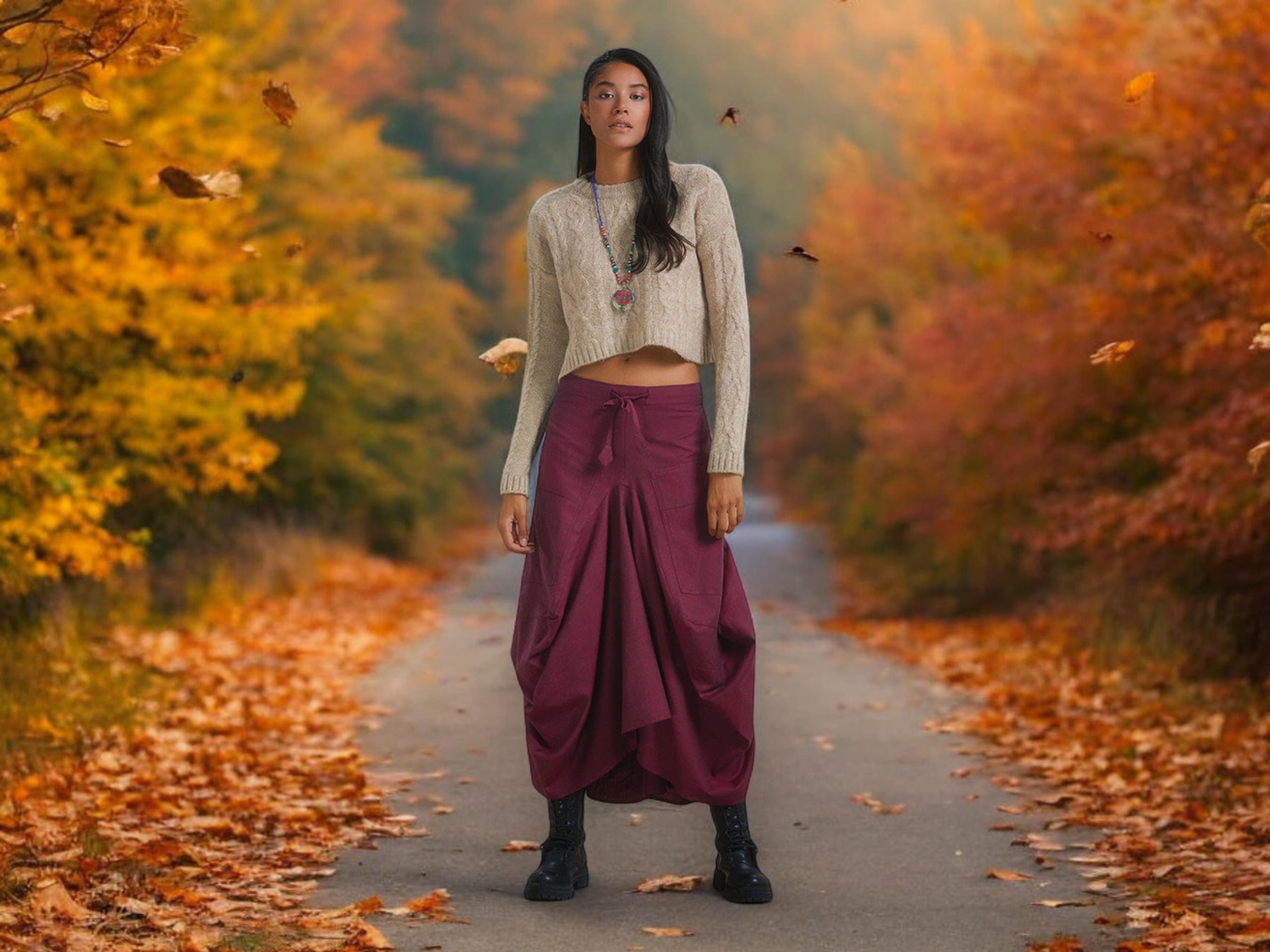 Bring a touch of boho charm to your wardrobe with this drawstring waist long skirt, designed with modern details and an asymmetrical cut. Its flowing silhouette combines comfort with effortless elegance, making it perfect for everyday wear.