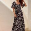 Lipsy White Floral Printed Chiffon Flutter Sleeve Woven Midi Dress
